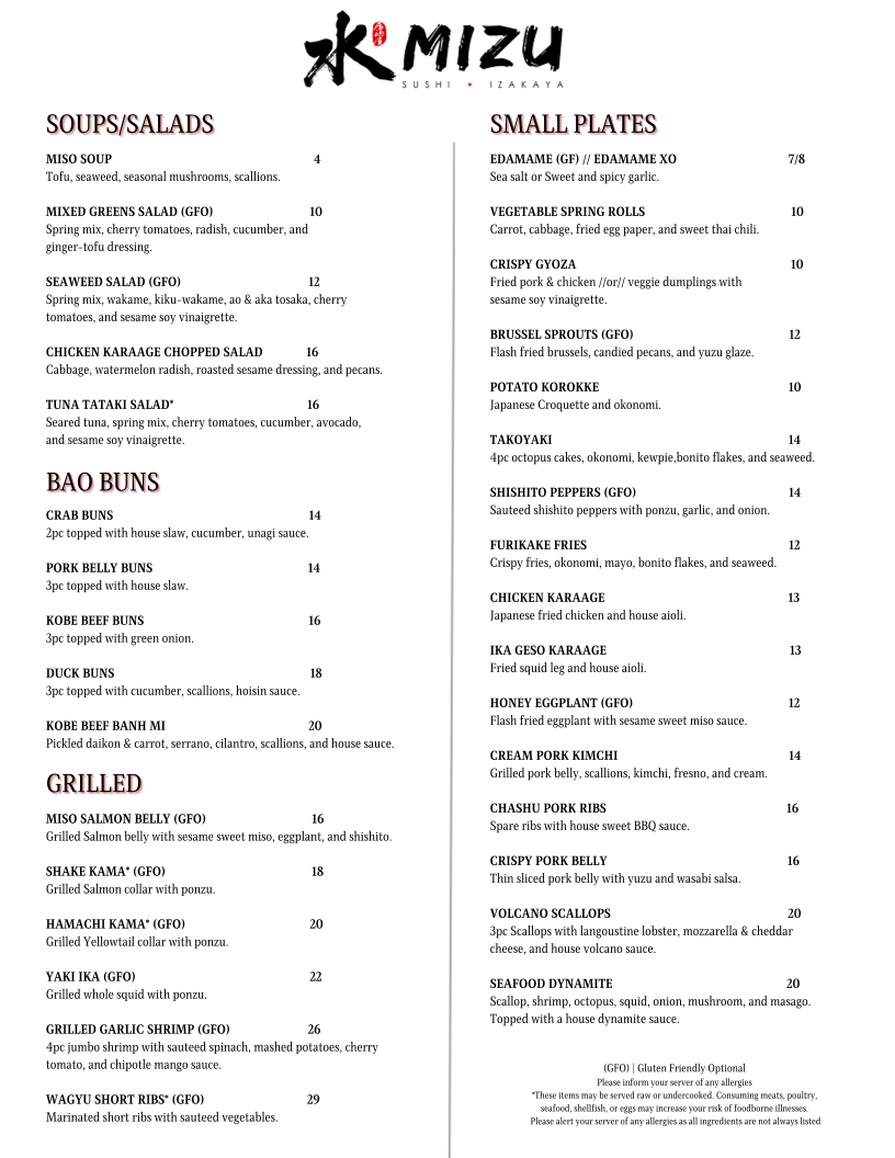 So reserve your table today by calling +1 720-372-7100, and get ready to indulge in the exceptional culinary journey at Mizu Izakaya!