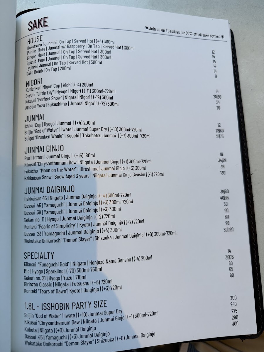 Pair your meal with an exquisite drink from their selection of Japanese wines, such as the Choya Plum Wine, available for $12.00, allowing you to savor every sip while experiencing the unique blends of the culture.